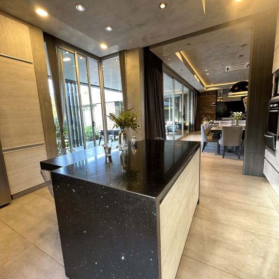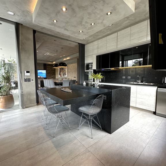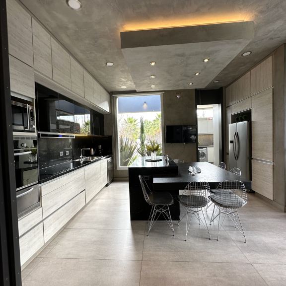 COCINA CON ISLA, EQUIPADÍSIMA CON HORNO Y MICROONDAS EMPOTRADOS, CAMPANA EXTRACTORA LED, ANAFE VITROCERÁMICO.