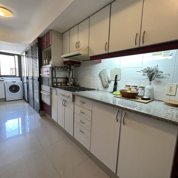 COCINA EQUIPADA CON DOBLE MESADA Y CÓMODOS ESPACIOS DE GUARDADO