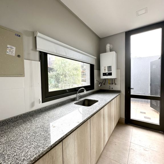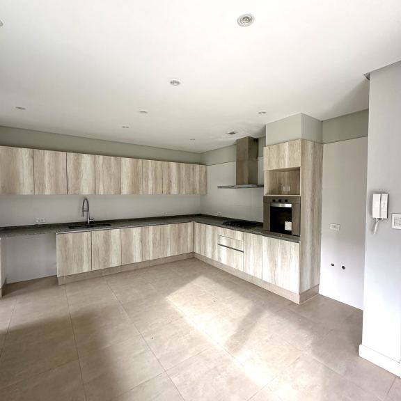 COCINA COMEDOR CON AMOBLAMIENTO COMPLETO, ANAFE, HORNO EMPOTRADO, CAMPANA EXTRACTORA LED.