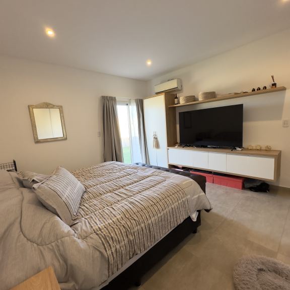 DORMITORIO EN SUITE CON PLACARD, MUEBLE RACK TV Y AUDIO, VESTIDOR, ANTEBAÑO Y BAÑO COMPLETO.