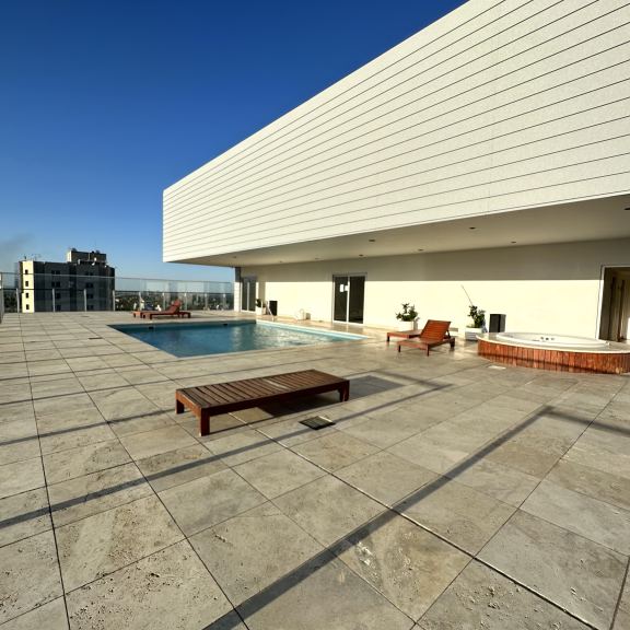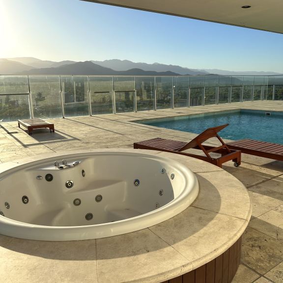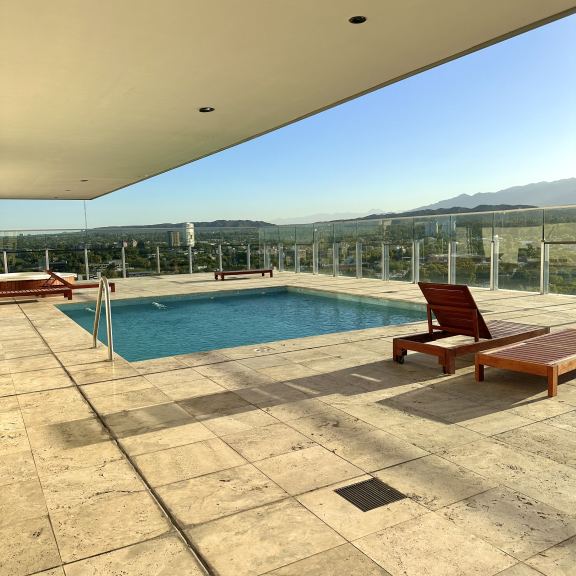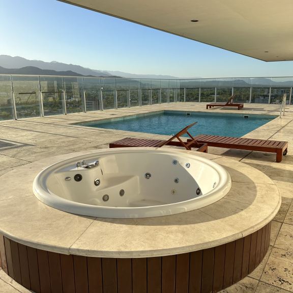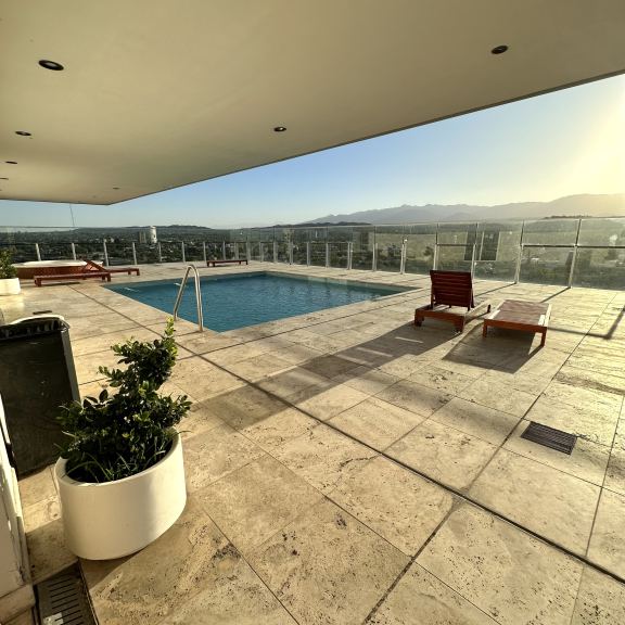 EN TERRAZA; SUM PARA EVENTOS INFORMALES, KITCHENETTE, GIMNASIO, SAUNA, PISCINA ATEMPERADA, JACUZZI, VESTUARIOS Y DUCHAS, DECK SOLARIUM CON INCREÍBLE VISTA A LA CORDILLERA.