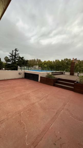 TERRAZA CON DECK SOLARIUM, PISCINA Y PARRILLA CON VISTA A LA MONTAÑA.
